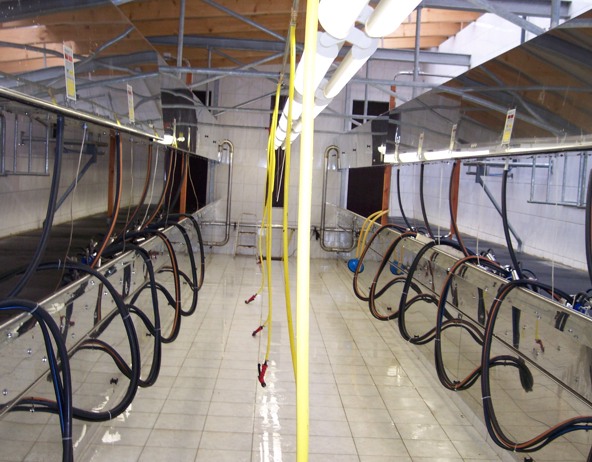 die Seiten der Melkergrube verkleidet und decken somit die Edelstahl-Milchleitung,